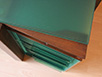 Alle direkt sichtbaren Glaselemente wurden in einem mattierten Glas mit einem attraktiven grünen Farbton ausgeführt, welcher einen einzigartigen Kontrast zu den Komponenten aus Echtholz bildet. Der Tisch kann mit einer LED Beleuchtung ausgestattet werden.
