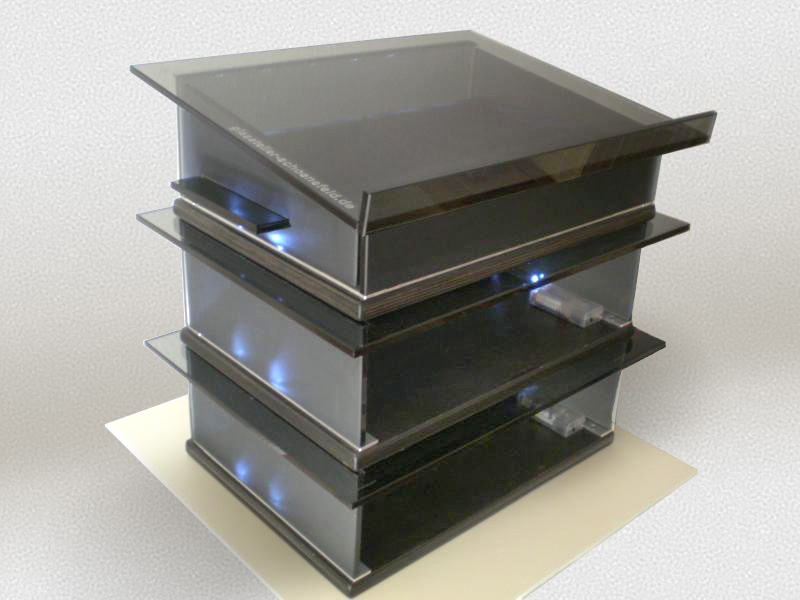 Bestehend aus drei übereinander gestapelten Elementen die mittels eingelassener Magneten verbunden sind, kann dieses Rednerpult auf die gewünschte Höhe "gestapelt" werden.