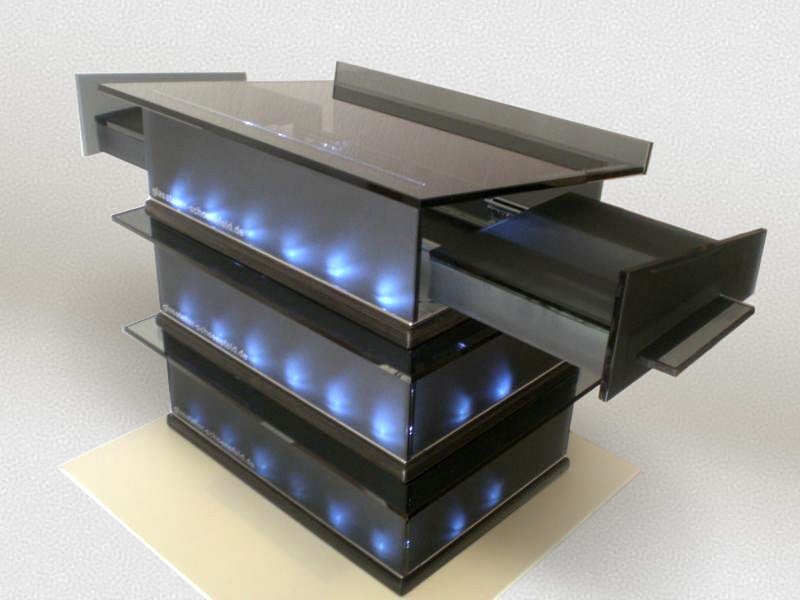 Die in jedem einzelnen Element unabhängig und kabellos zuschaltbare LED Beleuchtung wird den Platz des Redners eindrucksvoll ins Zentrum des Raumes treten lassen.