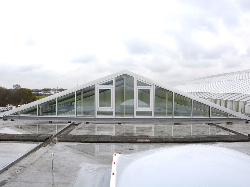 Im Herbst 2017 wurde das aus 113 Glaselementen bestehende Satteldach Oberlicht des Saunenbereiches der Therme Erding mit 3-fach Isolierglaseinheiten aufgerüstet und die dazugehörigen äußeren Fassadenelemente modernisiert.