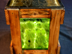 Durch die anschließende Verglasung mit einem sehr hochwertigen, mundgeblasenen Krokodilhautstruktur-Ornamentglas in verschiedenen Farbtönen werden einzigartige Lichteffekte erreicht.