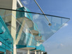 Die Vordachkonstruktion am Haupteingang des Hotel Garni / Therme Erding wurde ganz aus Glas konzipiert, welches in Bezug auf die Größe des Glases (3000 mm / 1700 mm) in dieser Bauform, an der Grenze des Realisierbaren liegt.